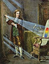 Рассказ Ньютона: "В начале 1666 года, то есть тогда, когда я был занят шлифовкой оптических стекол не сферической формы, я достал треугольную стеклянную призму и решил испытать с ее помощью прославленное явление цветов. С этой целью я затемнил свою комнату и проделал в ставнях небольшое отверстие с тем, чтобы через него мог проходить тонкий луч солнечного света Я поместил призму у места входа света так, чтобы он мог преломляться к противоположной стене. Сначала вид ярких и живых красок, получавшихся при этом, приятно развлек меня." Пропуская сквозь одну и ту же призму то одни красные лучи, то одни фиолетовые и так далее, он окончательно убедился, что белый свет состоит из лучей разной преломляемости и что степень преломляемости находится в тесной связи с качеством лучей, именно с их цветом. Оказалось, что красные лучи наименее преломляемые и так далее до наиболее преломляемых фиолетовых. Ньютон был первым, кто понял, что белый свет состоит из смеси световых лучей, каждый с разным цветом. т.е. имеет сложный состав.